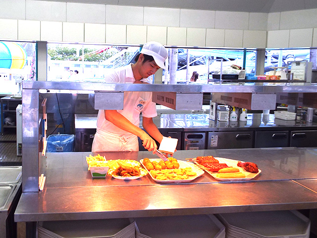 体力に自信あり!なあなたには調理スタッフがおススメ。焼きそば、ラーメン、ホットドックなど簡単な調理補助のお仕事。火を扱うので暑さとの戦いです。プール外への応援もあるので稼げます!!