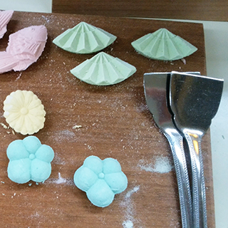 和三盆作り体験in琴平。難しそうにみえて実は簡単!和三盆の粉を形づめしてトントン叩いて出来上がり♪色と形がたくさんあって選ぶの迷っちゃったけど楽しい!