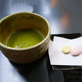出来上がった和三盆はお抹茶とセットで美味しくいただきました♪自分でつくったものはおいしさ倍増!